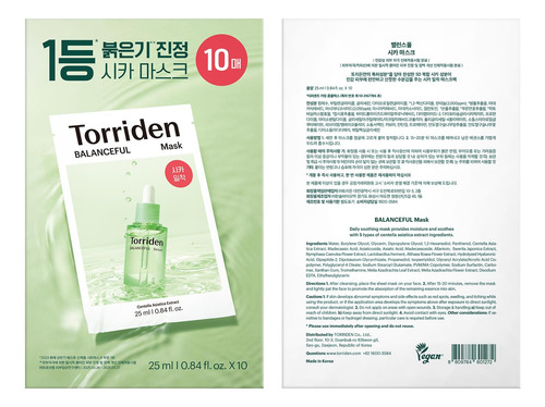 Máscaras Faciais Torriden Balanceful Cica 5d Cica 10 Folhas quantidade