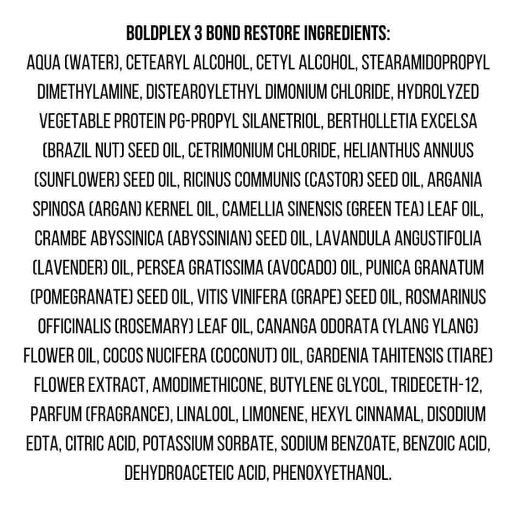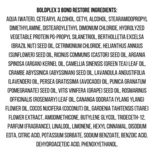 Uma revolução no cuidado do cabelo! Não confunda nosso Bond Restore com uma máscara ou um condicionador, é muito mais do que isso. É um intenso milagre restaurador do cabelo que busca e repara as ligações de dissulfeto quebradas que compõem seu cabelo. Ele reconstrói, restaura e protege enquanto reduz as quebras e fortalece visivelmente. Estresse, poluição, estilo e produtos químicos, nosso cabelo lida com todos eles. O BoldPlex Bond Restore Treatment 3 é o herói reparador capilar de que você precisa para salvar seus cabelos cansados. Formulado com uma grande quantidade de ingredientes que eliminam a fragilidade, o BoldPlex Bond Restore Treatment 3 para reconstruir, revincular e reparar os laços quebrados, revelando um cabelo com aparência mais saudável, preparado para combater danos e quebras futuras. Como usar: Use uma vez por semana. Para cabelos particularmente secos/danificados, use 2-3 vezes por semana. Pegue uma quantidade generosa e aplique nos cabelos úmidos e secos com uma toalha, da raiz às pontas. Penteie e deixe agir por no mínimo 10 minutos (recomendamos muito mais tempo, se você tiver tempo, alguns Boldplexers o deixam agir durante a noite). Enxágue, lave com shampoo e condicione. Para obter o melhor regime de cuidados com o cabelo, use em conjunto com o shampoo BoldPlex Bond Strengthening No.4 e o condicionador BoldPlex Bond Strengthening No.5 para desfrutar de cabelos macios, brilhantes e restaurados. – Nosso tratamento capilar cientificamente inovador funciona em nível molecular para ajudar a reparar cabelos secos e danificados, penetrando profundamente em cada fio e fortalecendo-o de dentro para fora. – MECHAS MAIS SAUDÁVEIS – Use esta máscara milagrosa de cuidado capilar para condiciona profundamente, melhora a retenção de umidade e alivia quaisquer danos causados pelo estilo, coloração, quimicamente tratando ou processando demais seu cabelo. – LIVRE DE CRUELDADE – Este condicionador profundo BoldPlex 3 para cabelos secos e danificados não contém parabenos, sulfatos e é 100% vegano! Nossos produtos nunca são testados em animais e nossas embalagens são totalmente recicláveis! – PARA TODOS OS TIPOS DE CABELO — Nossa máscara capilar para cabelos secos e danificados e para o crescimento faz maravilhas em todos os tipos de cabelo, desde cabelos cacheados a secos, coloridos, crespos, quebrados ou descoloridos. Desfrute de 6,76 fl oz de tratamento para resultados duradouros! – FÁCIL APLICAÇÃO — Basta aplicar uma quantidade generosa no cabelo pré-lavado e seco com toalha, deixar agir por pelo menos 10 minutos e enxaguar com água morna!