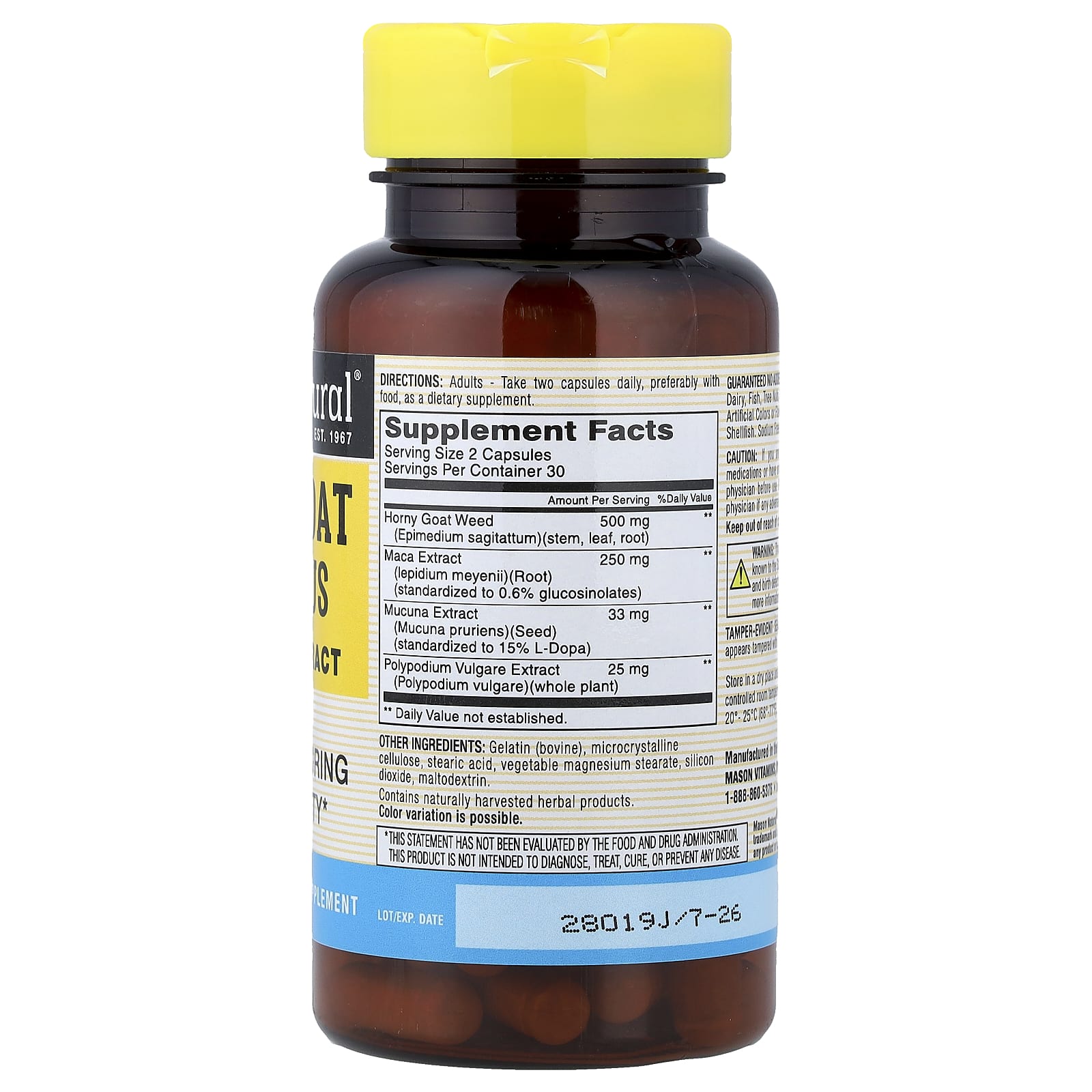 Mason Natural Corny Goat Weed Plus Com Extrato de Maca-Peruana 60 Cápsulas – Mason Natural Suplementos Ervas Erva-do-Bode.