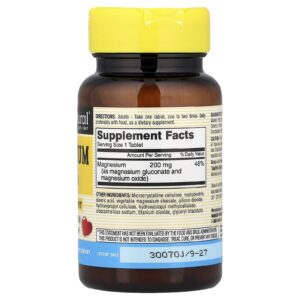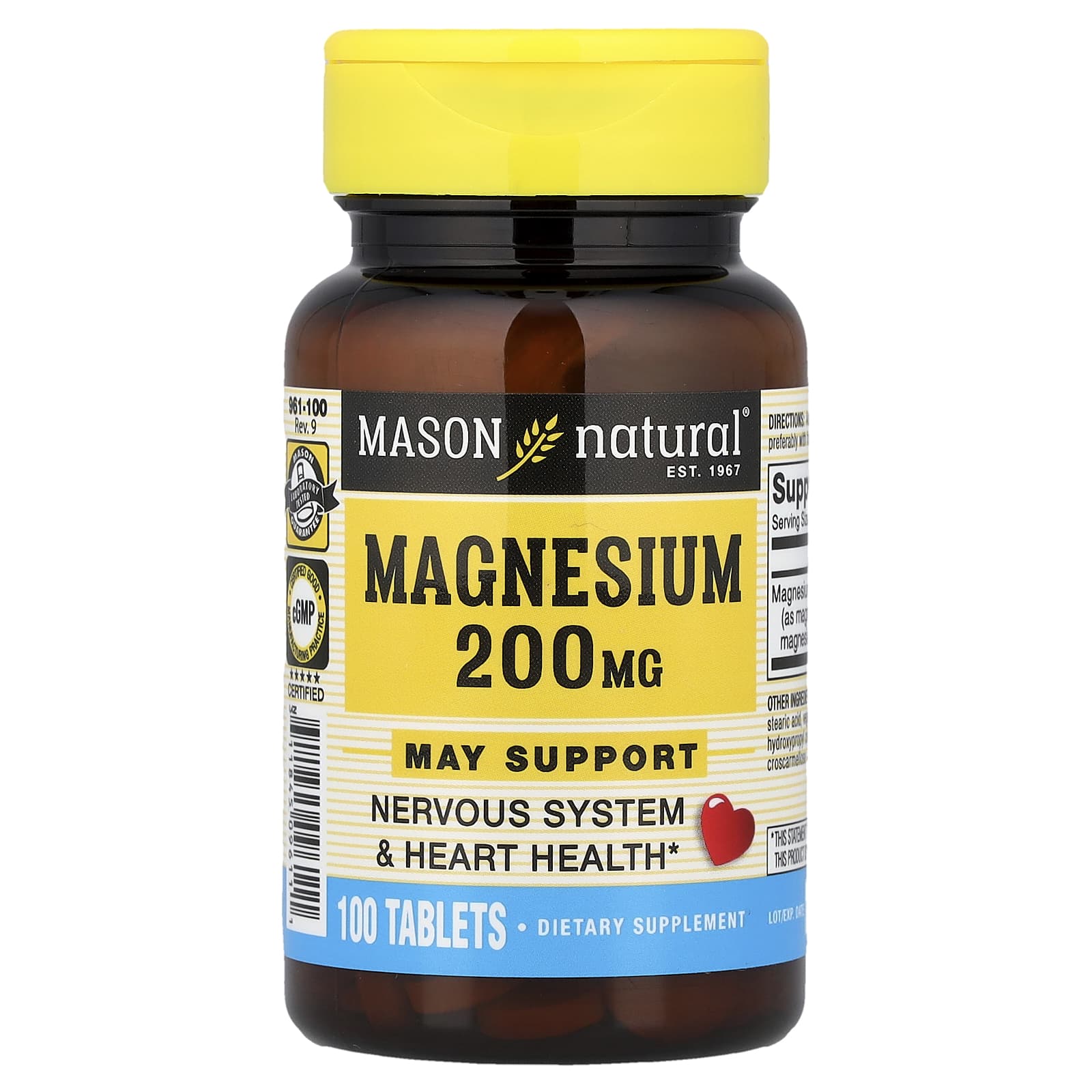 Mason Natural Magnésio 200 mg 100 comprimidos – Mason Natural Suplementos Minerais Magnésio Óxido de Magnésio.