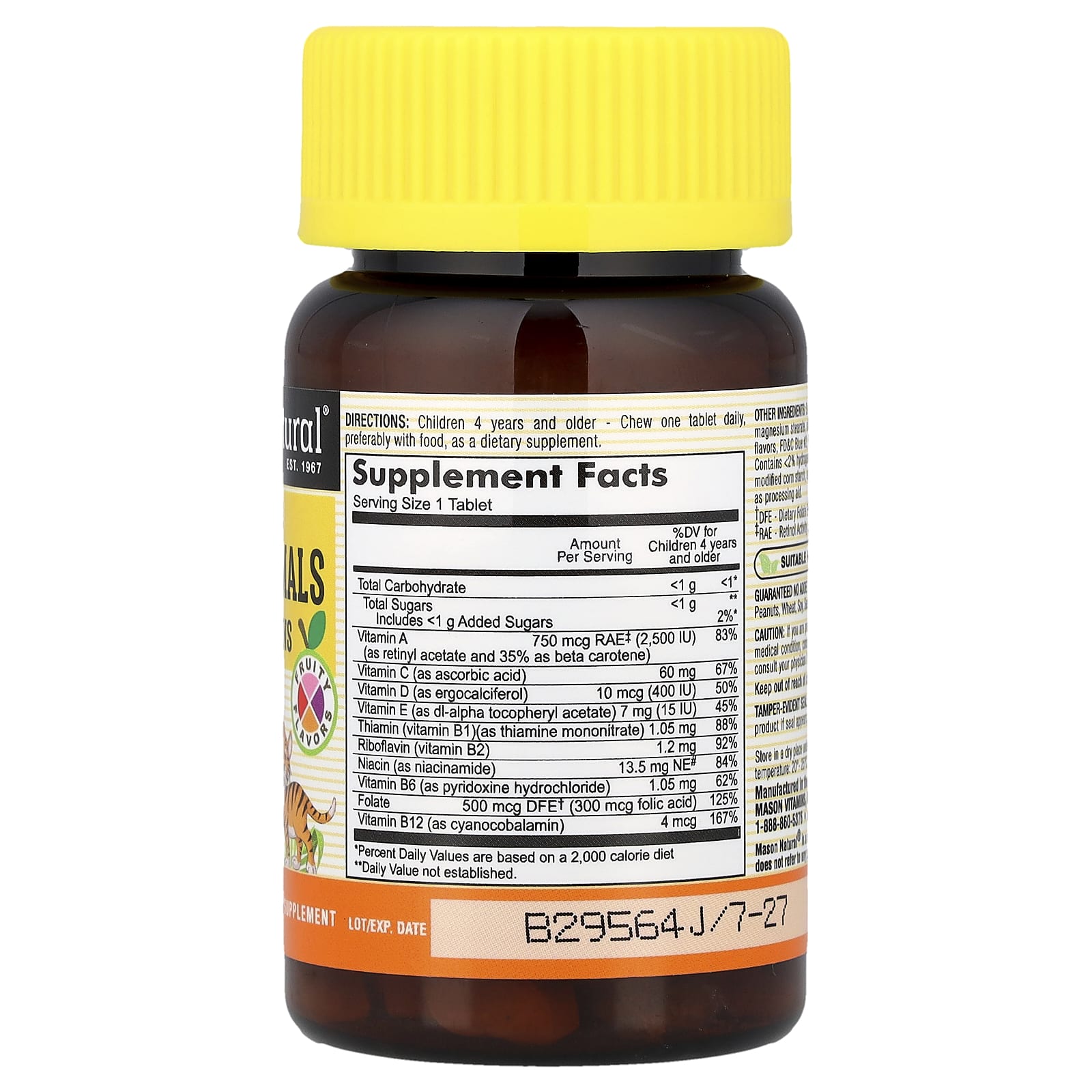 Mason Natural Multivitamínico Mastigável Little Animals Frutas 60 Cápsulas Mastigáveis – Mason Natural Bebês e Crianças Saúde Infantil Vitaminas para Crianças Multivitamínicos Infantis.