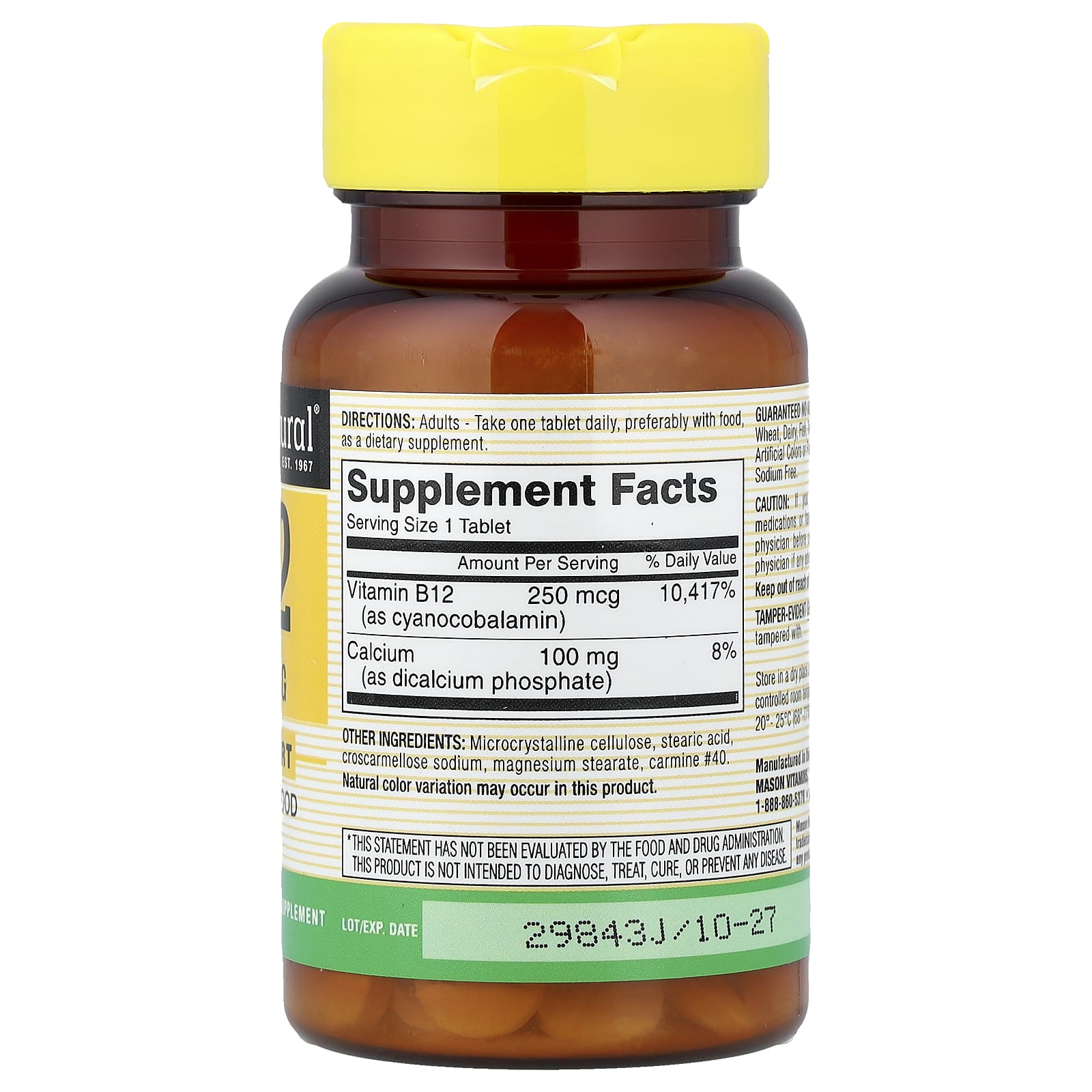Mason Natural Vitamina B-12 100 Comprimidos – Mason Natural Suplementos Vitaminas Vitamina B Complexo de Vitaminas B.