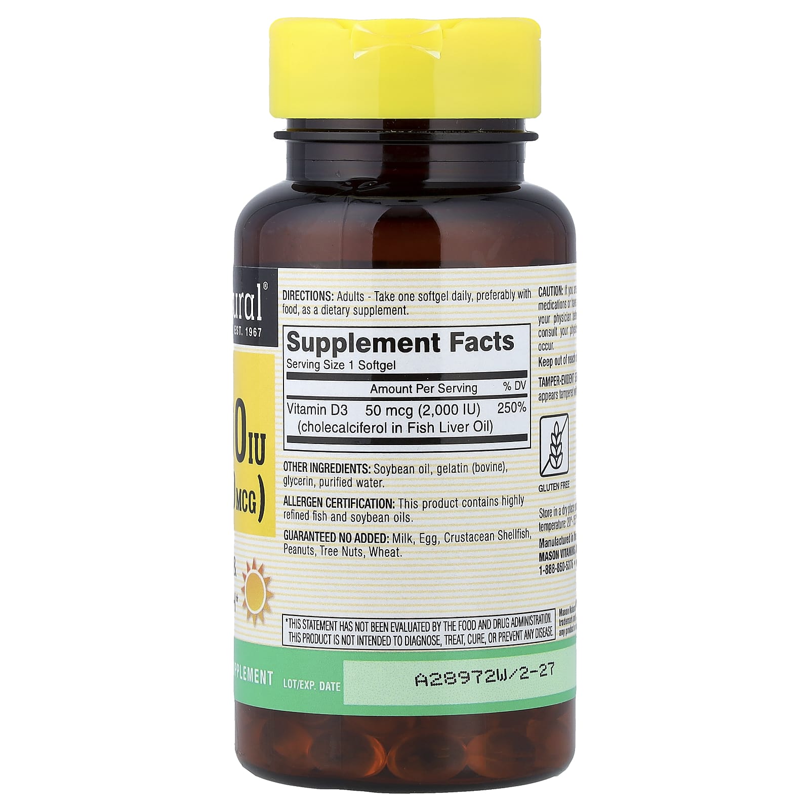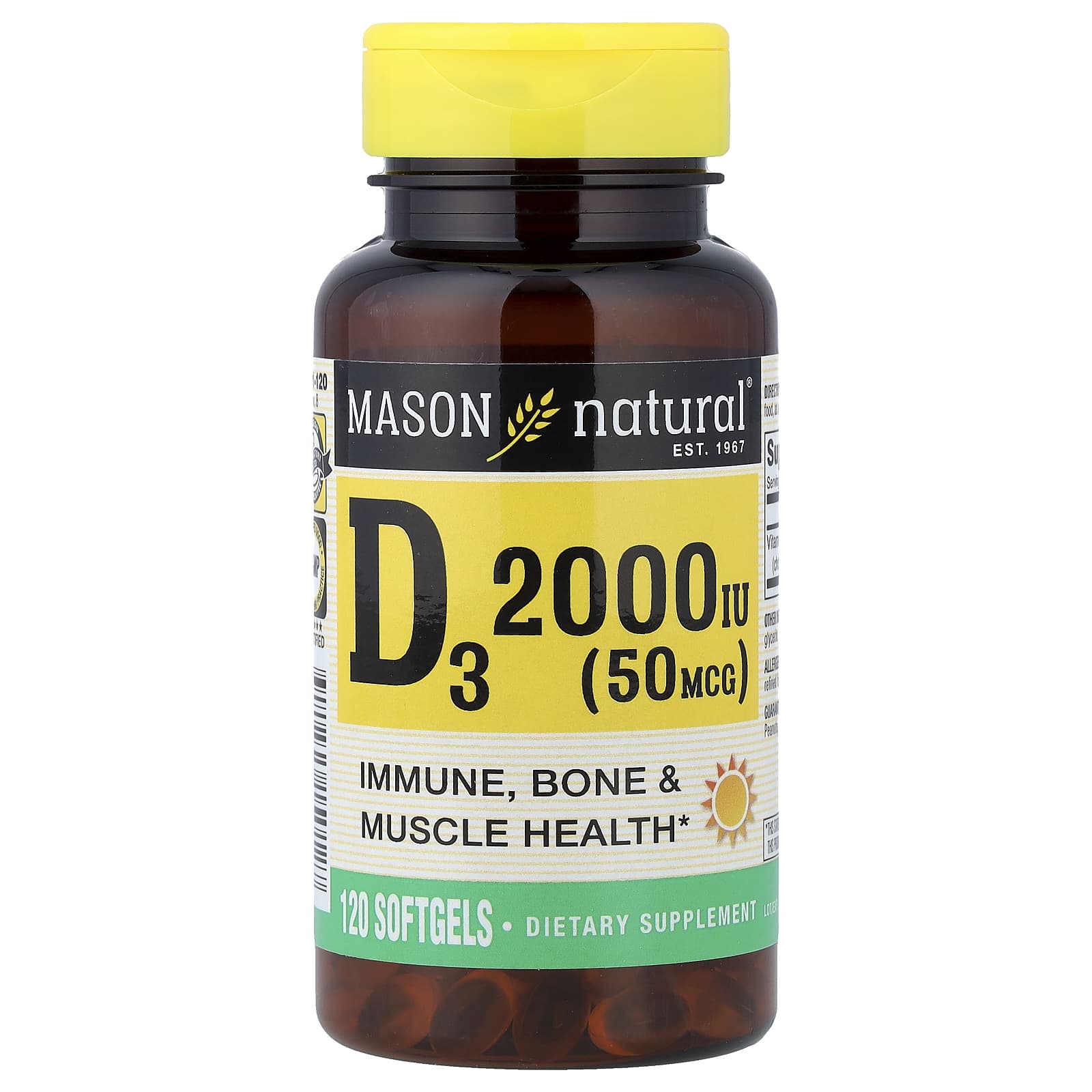 Mason Natural Vitamina D3 50 mcg (2.000 UI) 120 Cápsulas Softgel – Mason Natural Suplementos Vitaminas Vitamina D.