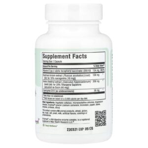 Vitamina E (como hemisuccinato de dextroalfatocoferol) (200 UI) 134 mg 893%