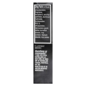 | Ingredientes Inativos: Água, decametilciclopentasiloxano, dimeticona, glicerina, isononanoato de isotridecil, peg-9 polydimethylsiloxyethyl dimethicone, disteardimonium hectorite, dimeticona/polyglycerin-3 crosspolymer, cloreto de sódio, peg-10 dimethicone, fenoxietanol, methylparaben, Disodium stearoyl glutamate, clorfenesina, disodium EDTA, acrilatos , propilparabeno, fragrância, tocoferol, palmitato de ascorbila, hidróxido de alumínio, butylparabeno peg-9, etilparabeno, dipropilenoglicol, alpha-isomethyl ionone; Pode conter: dióxido de titânio, óxidos de ferro. Fabricado nos EUA com ingredientes norte-americanos e/ou importados. |
