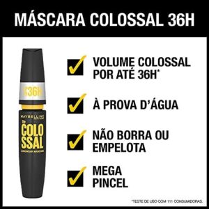 Maybelline Volum Express Colossal Waterproof Mascara Makeup , Very Black, 1 Count – Volumizing Waterproof Mascara: Big, bold, and fast enough to take on NYC, this clump-free, flake-resistant mascara delivers 9x times the volume in just one coat, leaving lashes looking thicker and more voluminous – Long-Lasting Volume: Features our iconic Mega Brush and plumping formula infused with 2x the collagen for big, bold lashes for up to 36 hours; Ophthalmologist tested and suitable for contact lens wearers – Its All in the Eyes: Subtle lines, smokey vibes, custom brow looks, classic tones or a shot of color; Our eyeshadow, eyeliner, brows and mascara collections are designed to transform your look – Create Any Look: Our foundations, bb creams, concealers and highlighters create a perfect canvas; Make eye looks with eyeshadows, brow pencils and eyeliners, and perfect your pout with lipsticks and lip balms – Maybelline is the worlds number 1 makeup brand, from foundation to mascara to lipstick; Diverse, on the pulse, inspired by the city and tested on its streets