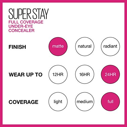 Não importa o que esteja na sua agenda, use o corretivo Super Stay Full Coverage Under-Eye para transformar a aparência de seus olhos cansados. Este corretivo leve, de cobertura total, apresenta um aplicador de pá preciso que desliza facilmente a fórmula sobre a pele para um acabamento suave e perfeito. Nosso corretivo sob os olhos é à prova d'água, resistente a transferências e manchas e dura até 24 horas.