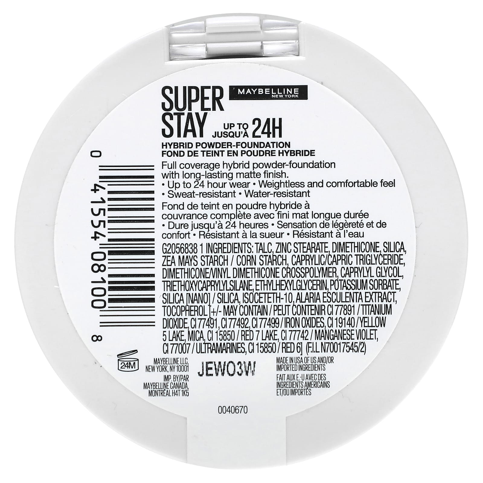 Obtenha seu visual matte suave com a Base Híbrida em Pó da Maybelline New York. Este híbrido de super-heróis de cobertura média a total oferece até 24 horas de super poder de permanência. Alimentada por tecnologia híbrida Superresistente, sua fórmula une o melhor de dois mundos: a performance de um líquido com o conforto de um pó. Sensação superleve e superconfortável. Longos trajes resistentes ao suor, à água e à transferência. Resiste à aglutinação e às manchas. Basta deslizar e você estará pronto para conquistar a cidade!