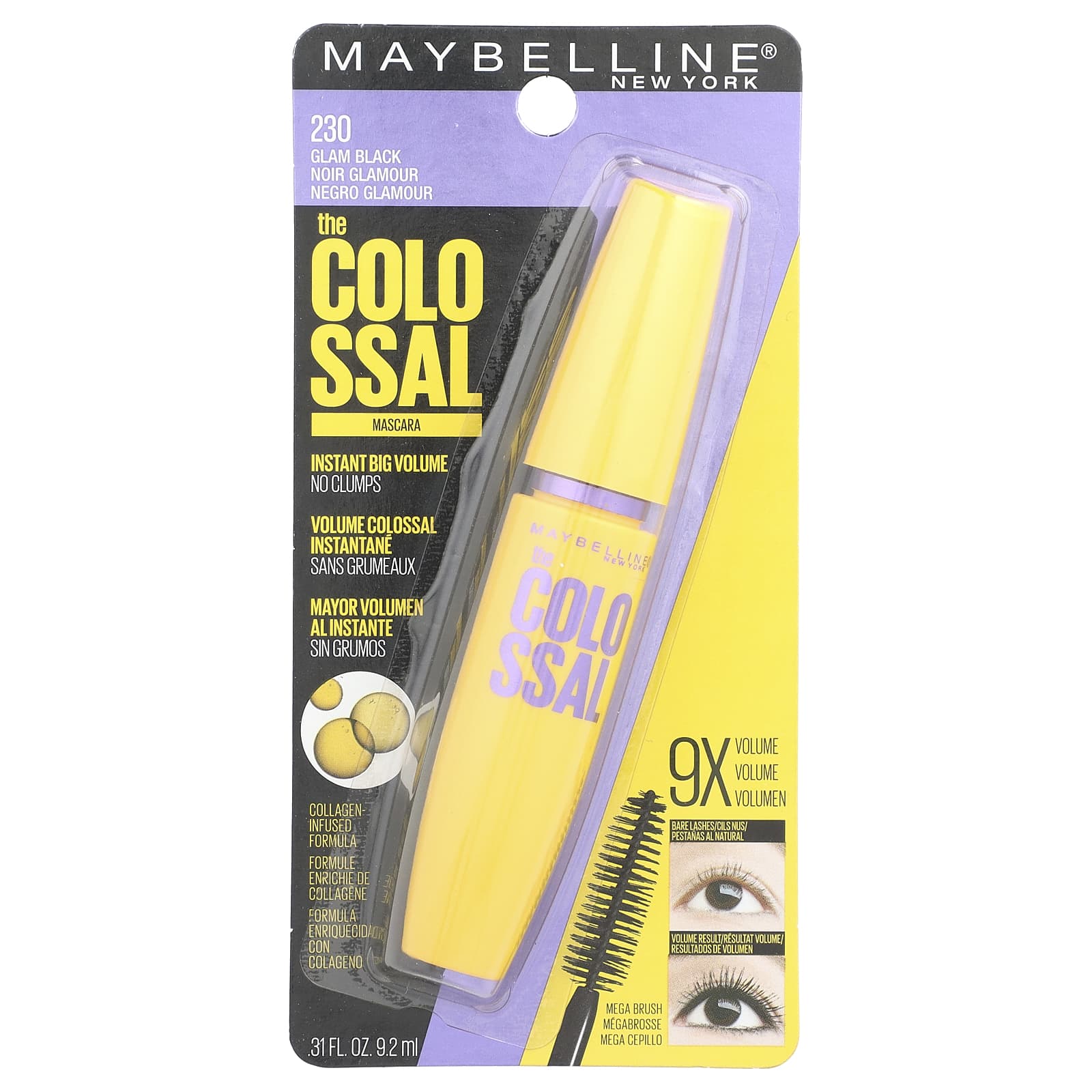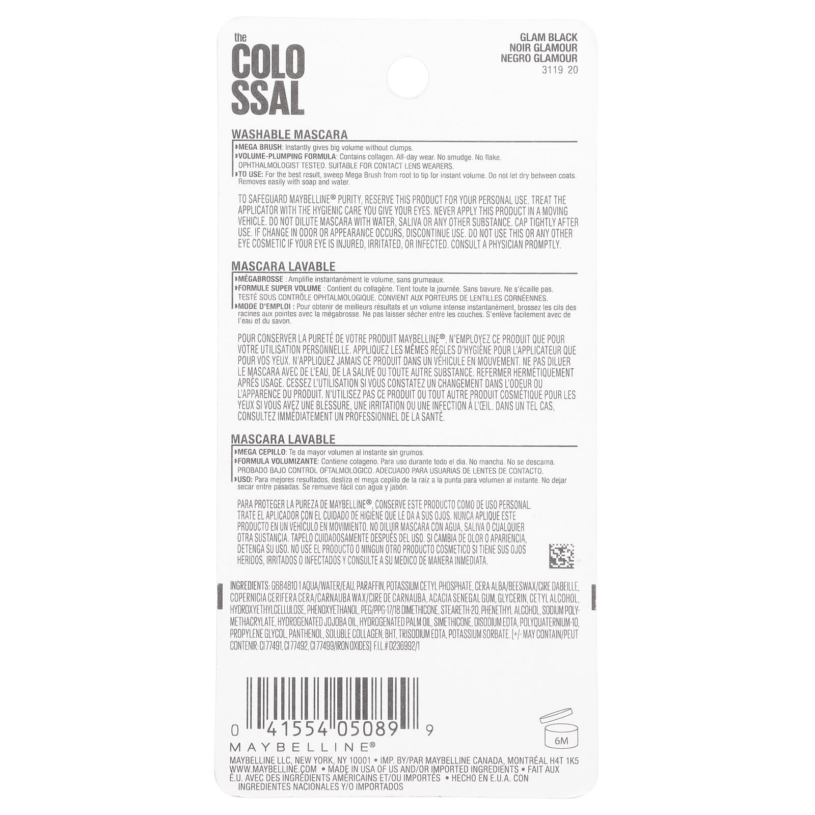 Maybelline The Colossal Mascara 230 Glam Black 92 ml (031 fl oz) – Maybelline Beleza Maquiagem Olhos Máscara de Cílios.