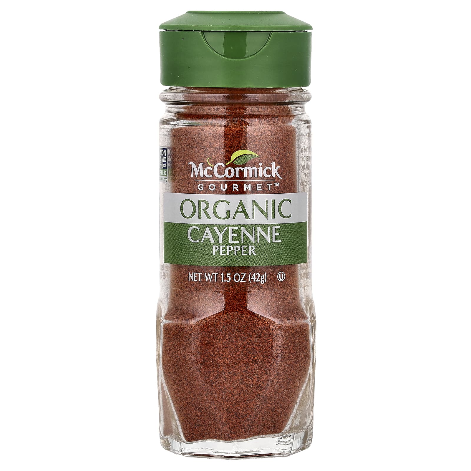 A Pimenta Caiena Orgânica McCormick Gourmet adiciona um toque picante e picante. Oferece um sabor picante para culinárias em todo o mundo.