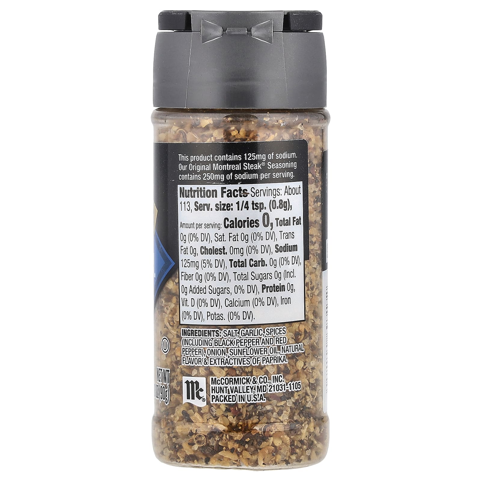 Este produto contém 125 mg de sódio. Nosso Tempero original Montreal Steak® contém 250 mg de sódio por porção.