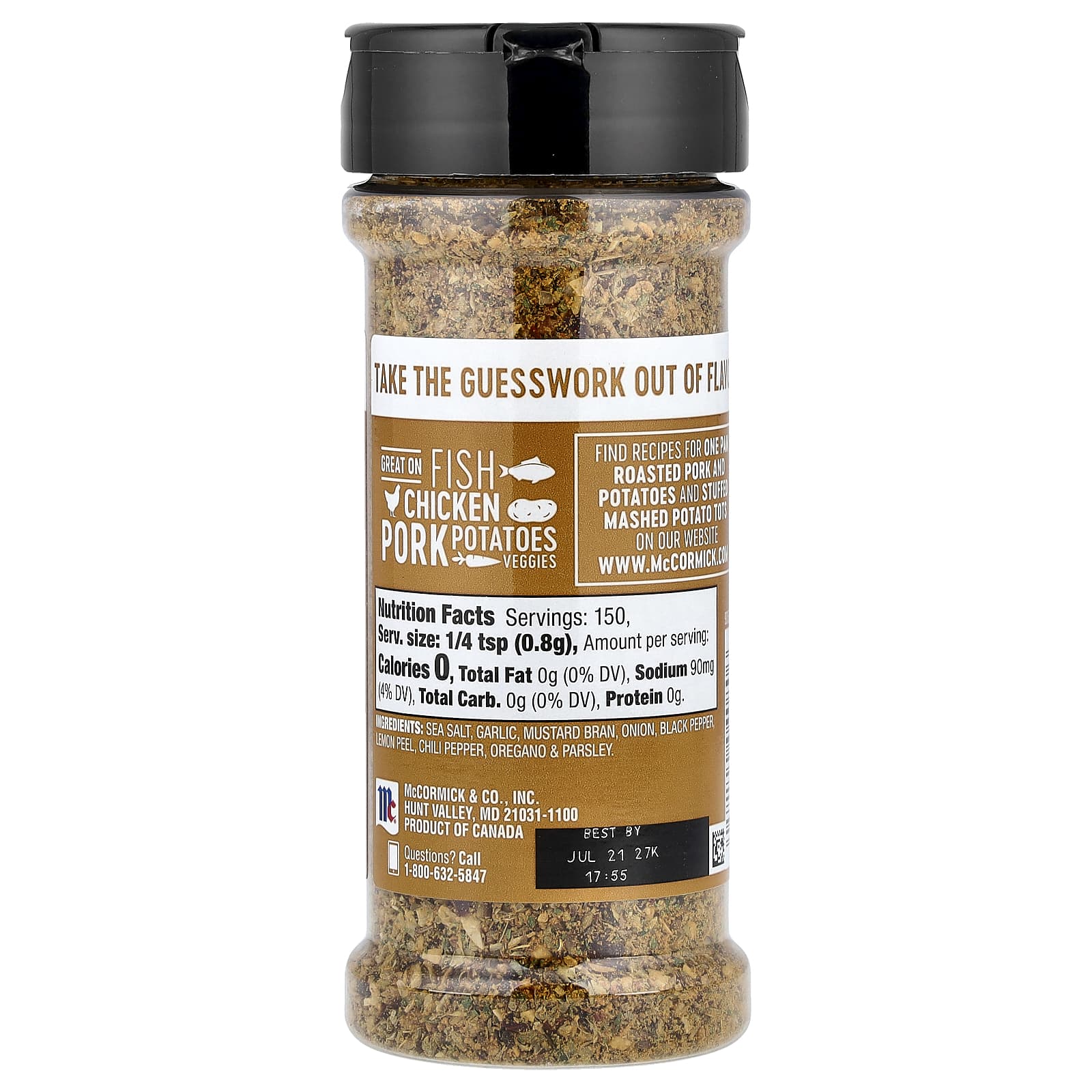 Peixes, carne de porco e batatas adoram o sabor picante e picante do Tempero McCormick de Alho e Cebola, Pimenta-do-reino e Sal Marinho. Um shake aqui e um shake ali (você nem precisa medir!) dá aos alimentos básicos um reforço de sabor bem-vindo. Eliminamos as pressuposições sobre o sabor, misturando de forma personalizada ervas e especiarias de verdade, como pimenta malagueta e pimenta-do-reino, com sal marinho, alho e casca de limão. Este tempero conveniente e indispensável é uma maneira fácil de realçar o sabor de carnes, vegetais e muito mais. Considere-o como sua nova arma secreta de tempero. Portanto, certifique-se de ter um pote extra em sua despensa!