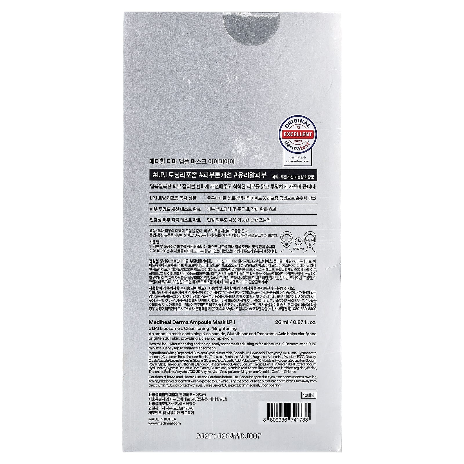 MEDIHEAL Máscara de Beleza IPI Derma Ampoule 10 Unidades 26 ml (087 fl oz) – MEDIHEAL Beleza Máscaras Faciais de Beleza Máscaras Faciais Máscaras em folha K-Beauty.