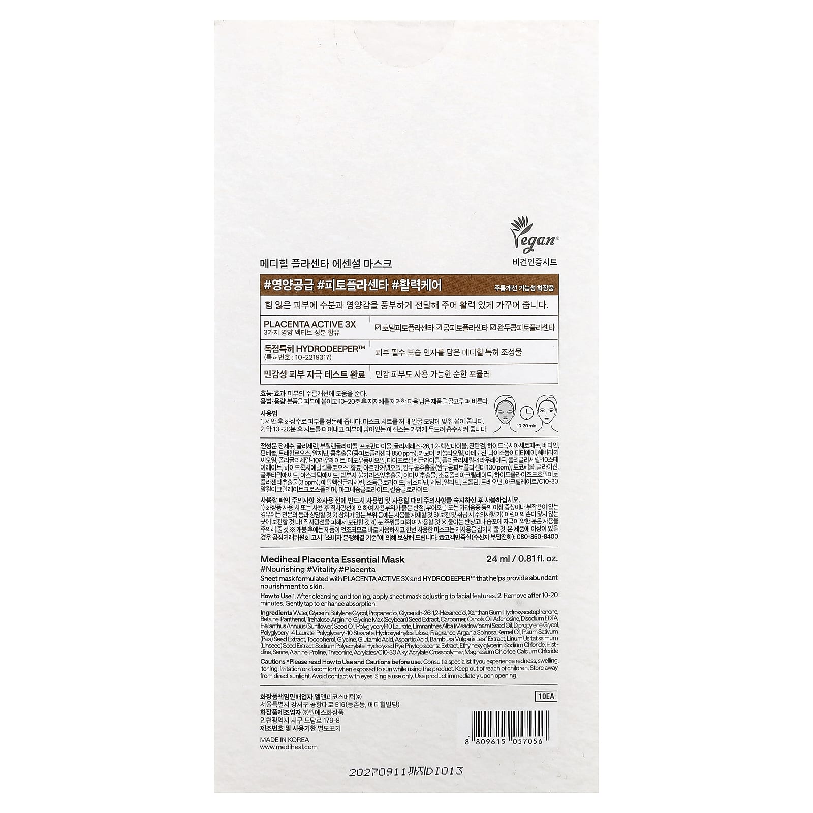 MEDIHEAL Placenta Máscara Essencial de Beleza 10 Folhas 24 ml (081 fl oz) Cada – MEDIHEAL Beleza Máscaras Faciais de Beleza Máscaras Faciais Máscaras em folha K-Beauty.