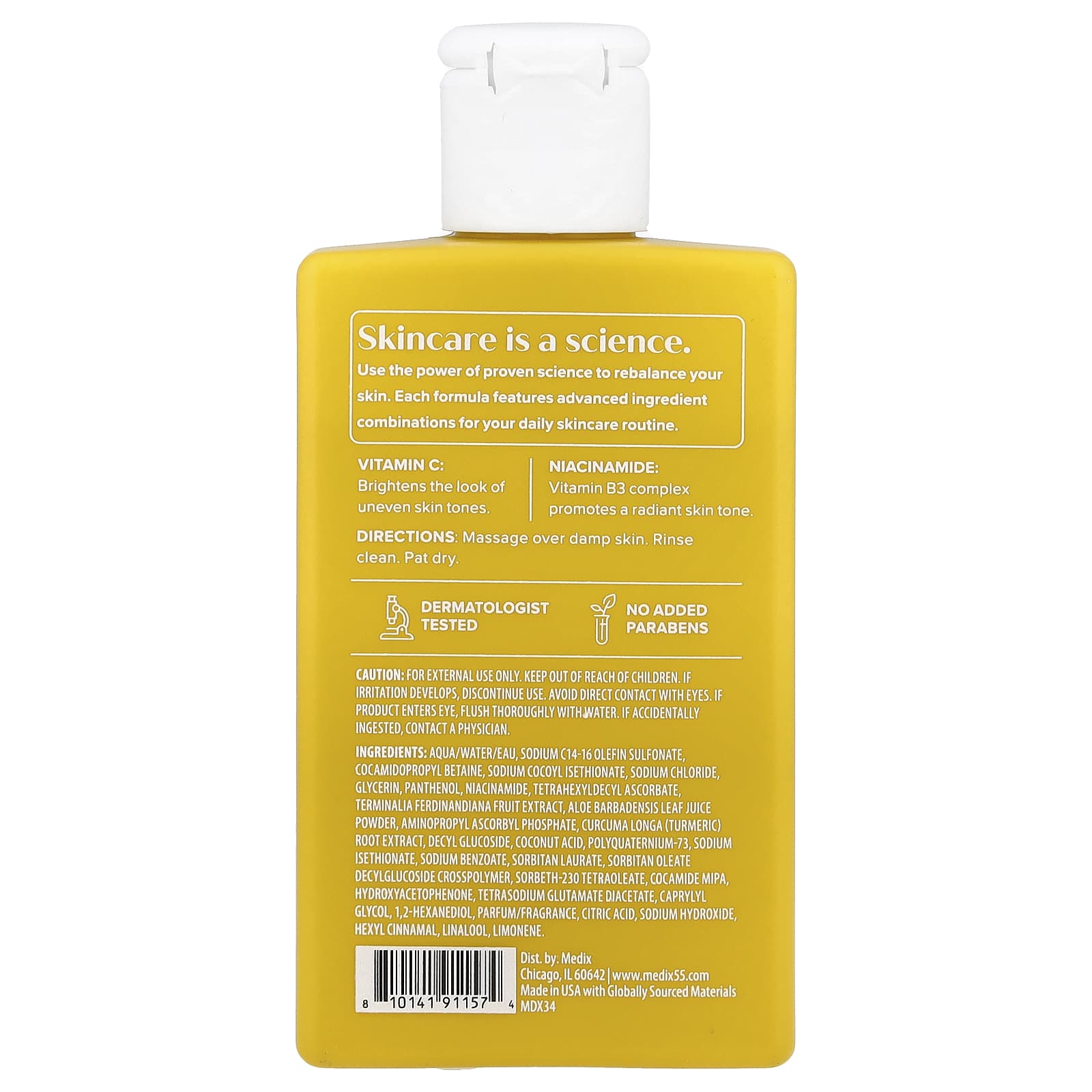 Medix 5.5 Sabonete Líquido Brilho Radiante Vitamina C + Nicotinamida 89 ml (3 fl oz) – Medix 5.5 Cuidados Pessoais Banho Sabonete Líquido Beleza Beleza por Ingrediente Cuidado para a pele com niacinamida.
