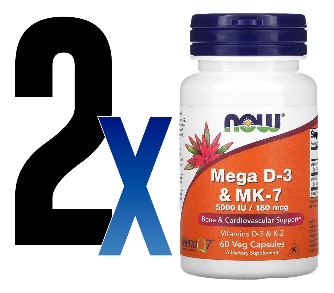 Mega Vitamina D-3 5000IU e MK-7 180Mcg Now Foods 60 Veg Caps – No Brasil