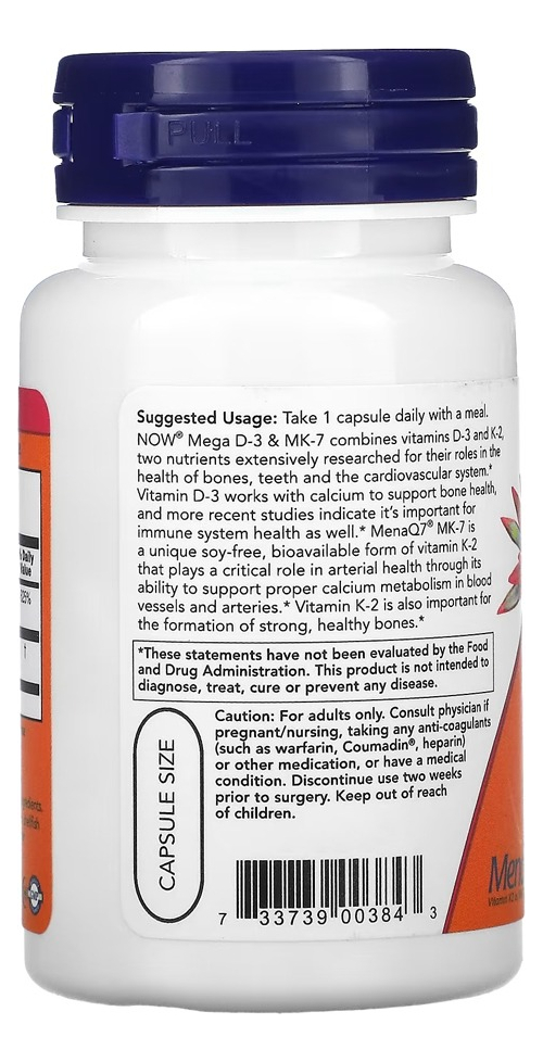 Mega D-3 e MK-7 combinam as vitaminas D-3 e K-2, dois nutrientes amplamente essenciais. A vitamina D-3 funciona com o cálcio para apoiar os ossos e sistemas do nosso corpo. O MK-7 é uma forma exclusiva de vitamina K-2, sem soja e biodisponível, que é importante para a formação de ossos fortes;