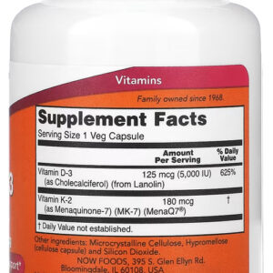Mega Vitamina D-3 5000IU e MK-7 180Mcg Now Foods 60 Veg Caps – No Brasil