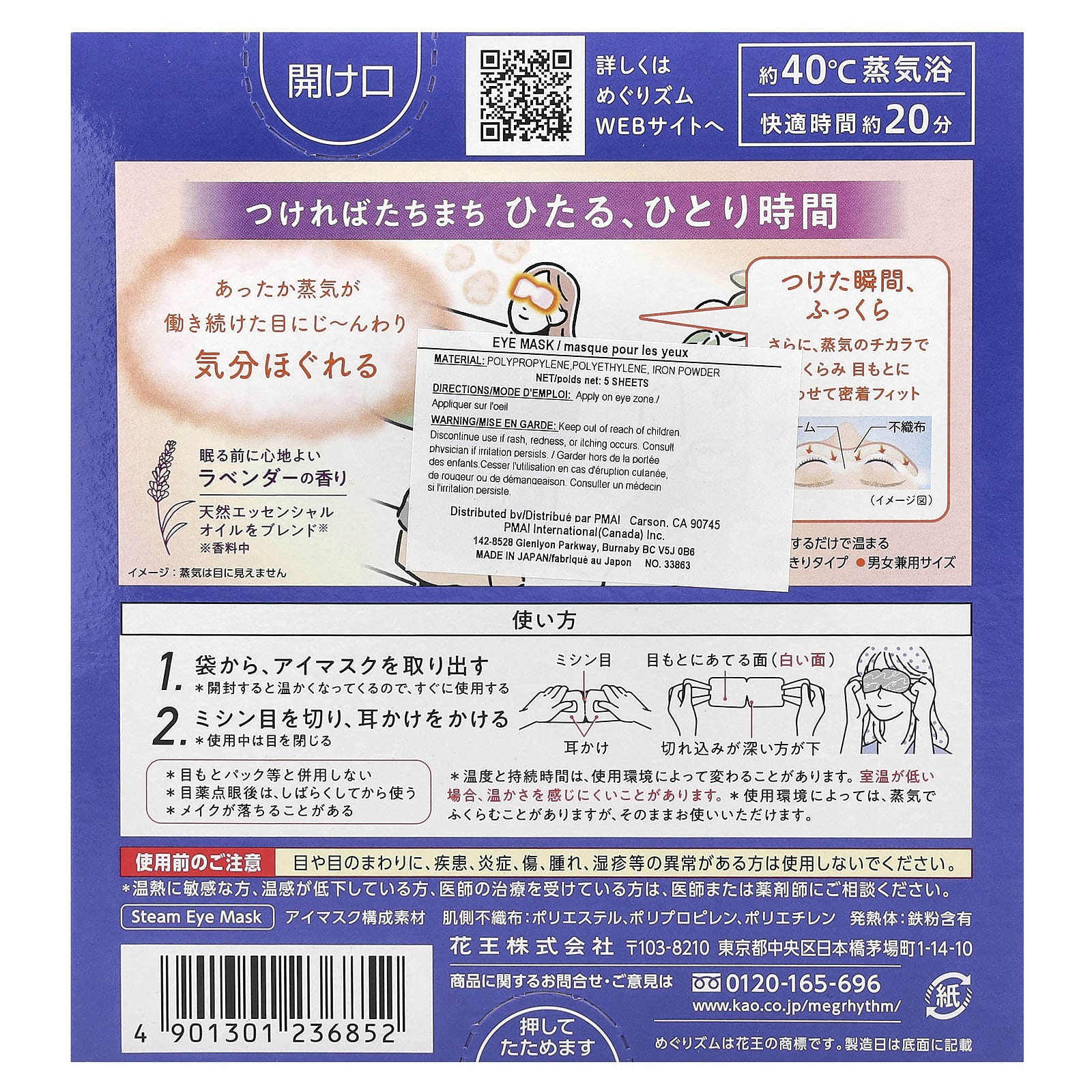 Megrhythm Kao Máscara de Olhos Suave Steam Lavanda Sage 5 Folhas