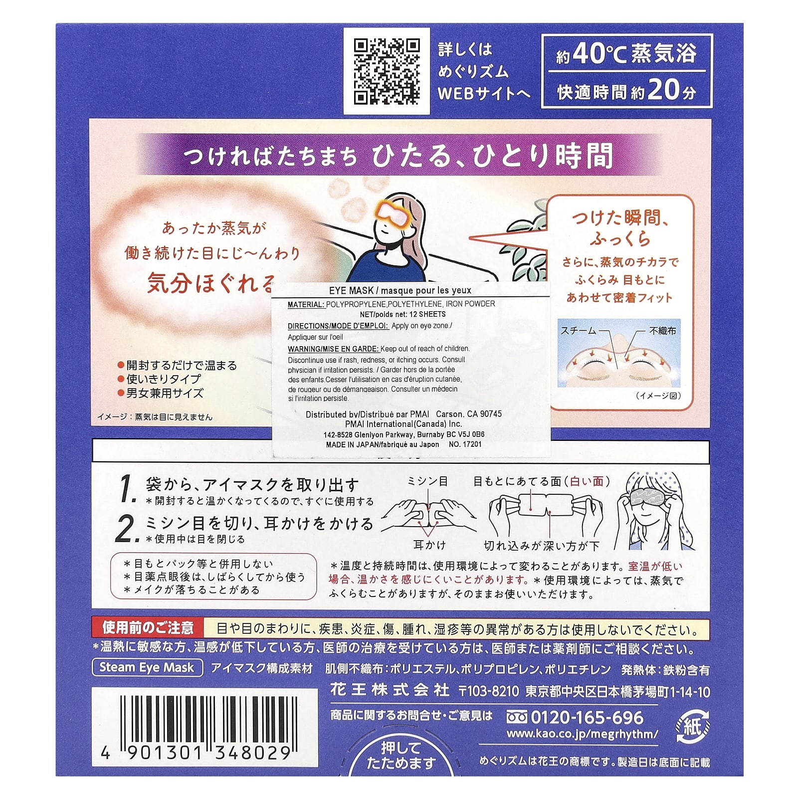 Megrhythm Kao Máscara de Olhos Suave Steam Sem Perfume 12 Folhas – Megrhythm Beleza Máscaras Faciais de Beleza Máscaras para a Área dos Olhos.