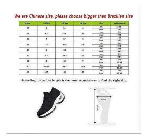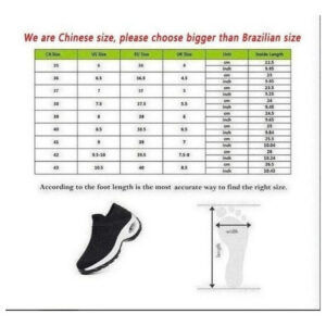 DICA: Siga estritamente a tabela de tamanhos para selecionar o tamanho que se refere ao comprimento do seu pé.