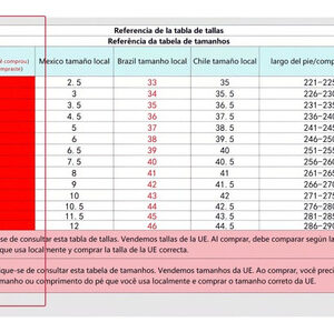 Somos tamanho padrão internacional (tamanho mexicano), se você confundir o tamanho, obtenha o tamanho de acordo com o comprimento do pé.