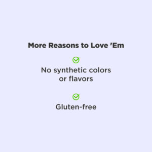 – NATURALMENTE DELICIOSO: mistura calmante de frutas vermelhas com sabor natural; feito sem cores ou sabores artificiais e sem glúten; 36 gomas por frasco
