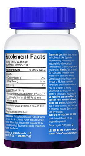 Dream Water Sleep Gummies; GABA, MELATONIN, 5-HTP; Snoozeberry, 60 Count |