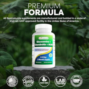 Best Naturals Glucosamina Condroitina e MSM (não OGM) – Promove a saúde das articulações – 180 contagens Glucosamina condroitina e MSM para articulações, cartilagem e tecido conjuntivo saudáveis Glucosamina condroitina e MSM apoiam o amortecimento das articulações Sem cor artificial, sabor ou adoçante, sem conservantes, sem açúcar, sem amido, sem milho, sem ovo, lactose -sem, sem glúten, sem trigo, sem fermento, sem peixe. Sem sódio Suplementos para articulações de glucosamina, condroitina e MSM, 2600 mg por porção – 180 cápsulas por frasco Produtos certificados GMP de alta qualidade: todos os produtos Best Naturals são fabricados de acordo com Boas Práticas de Fabricação GMP, entre os mais altos padrões no mundo. Orgulhosamente fabricado no Brasil. Pureza e potência garantidas Durante os meses de verão, os produtos podem chegar quentes, mas a Amazon armazena e envia os produtos de acordo com as recomendações dos fabricantes, quando fornecidos. SKU: B00HUWI6P2