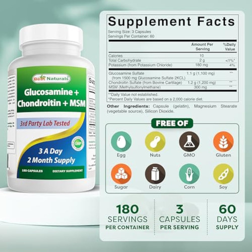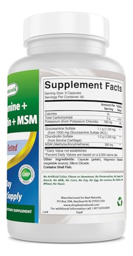 Supplement Best Naturals Glucosamine Chondroitin MSM 180 cap |