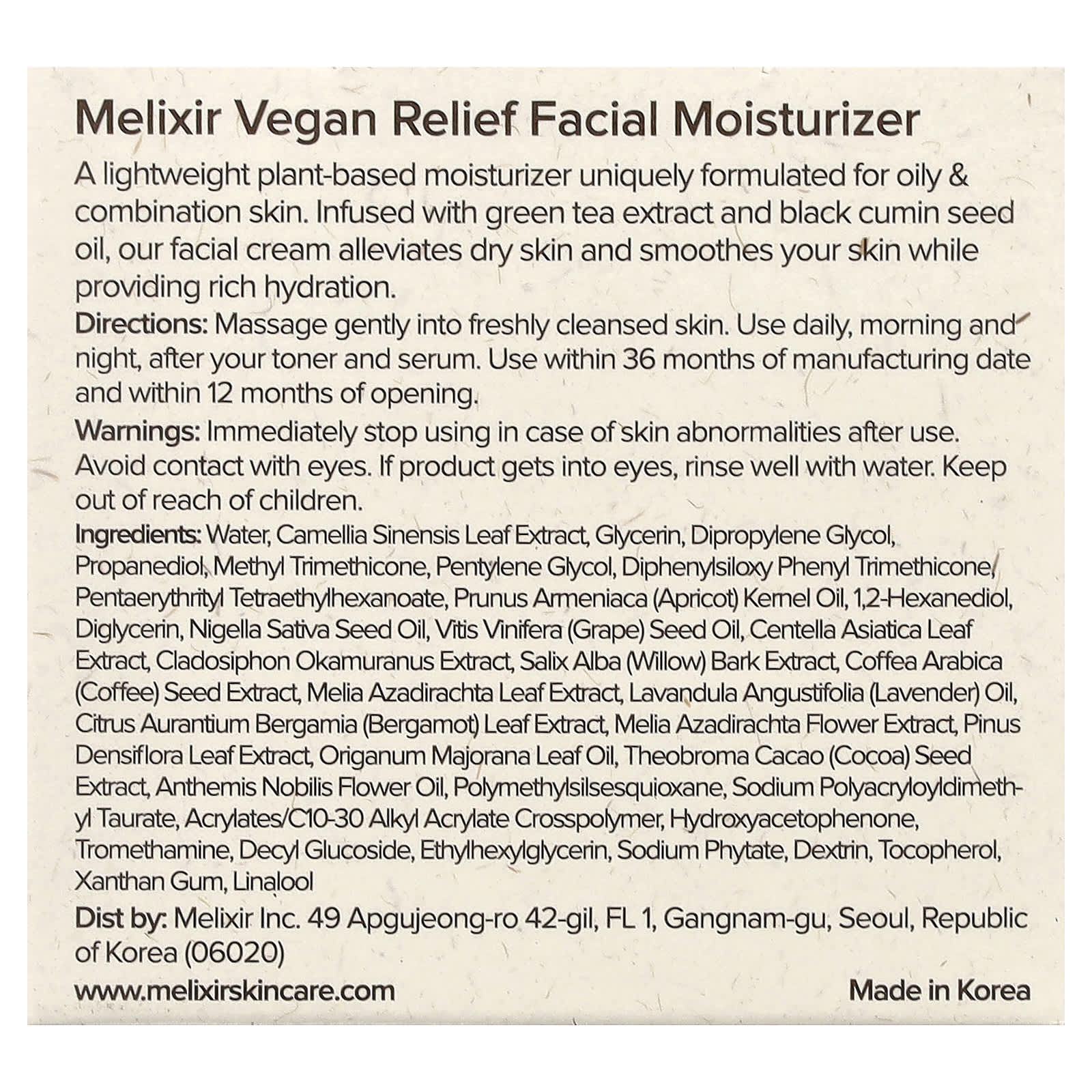 Melixir Hidratante Facial Alívio Vegano + Chá Verde 80 ml (27 fl oz) – Melixir Beleza Hidratantes Faciais e Cremes Hidratantes e cremes noturnos K-Beauty.