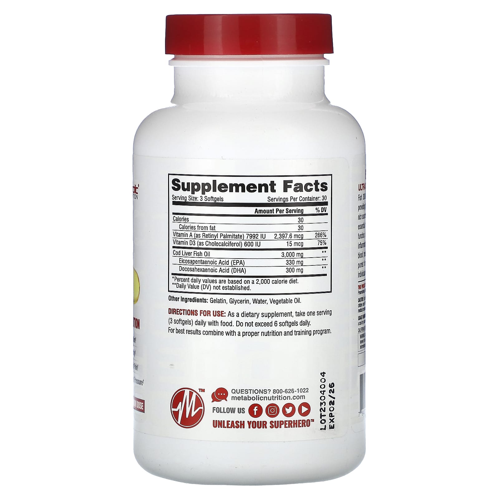 Fish 3000 é um Extrato de Óleo de Fígado de Bacalhau do Atlântico Ultraprensado a Frio que fornece o óleo de extrato puro não desnaturado da mais alta qualidade com fontes ricas de Vitaminas A e D e ácidos graxos Ômega-3. O Fish 3000 é um ácido graxo essencial que ajuda a melhorar a saúde dos olhos, reforça a função cerebral, aumenta a densidade e a força óssea, auxilia na redução da inflamação, contribui para níveis saudáveis de colesterol e ajuda a reduzir a pressão sanguínea. Fish 3.000 fornece 3.000 mg da forma mais pura de óleo de peixe disponível, desenvolvido especificamente para indivíduos que desejam maximizar a saúde e o bem-estar.