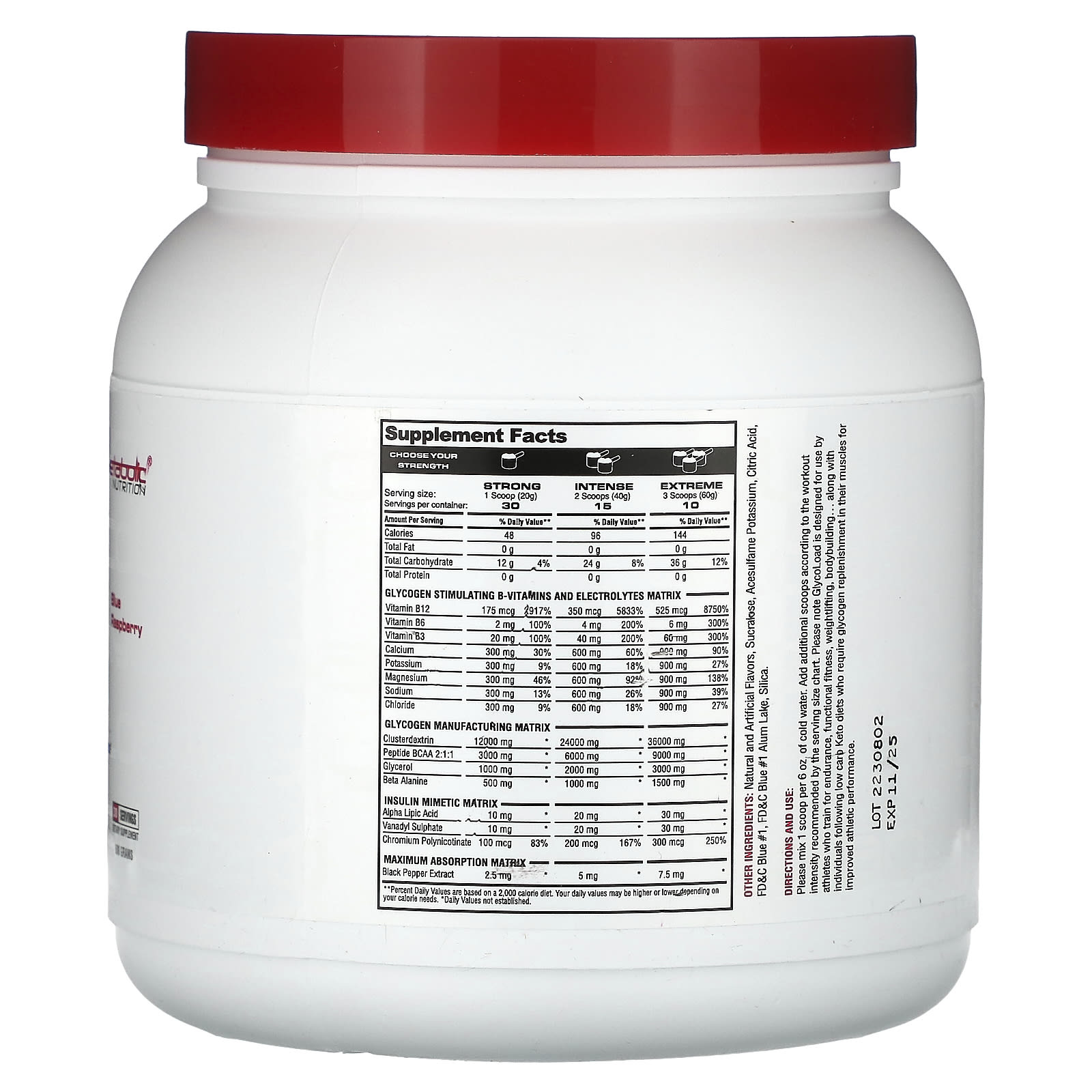 Metabolic Nutrition GlycoLoad Framboesa Azul 600 g – Metabolic Nutrition Nutrição Esportiva Suplementos para Recuperação Muscular Carboidratos em Pó.