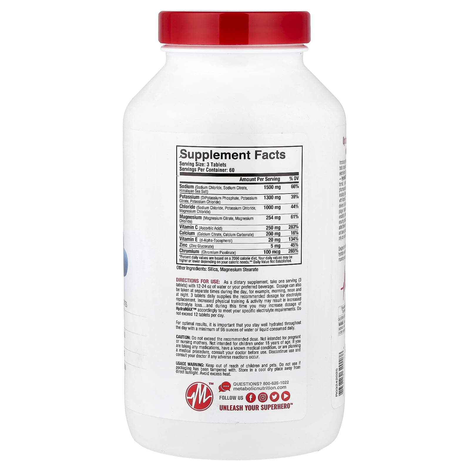 Metabolic Nutrition HydraMAX™ Potência Máxima 180 Comprimidos – Metabolic Nutrition Nutrição Esportiva Hidratação e Eletrólitos.