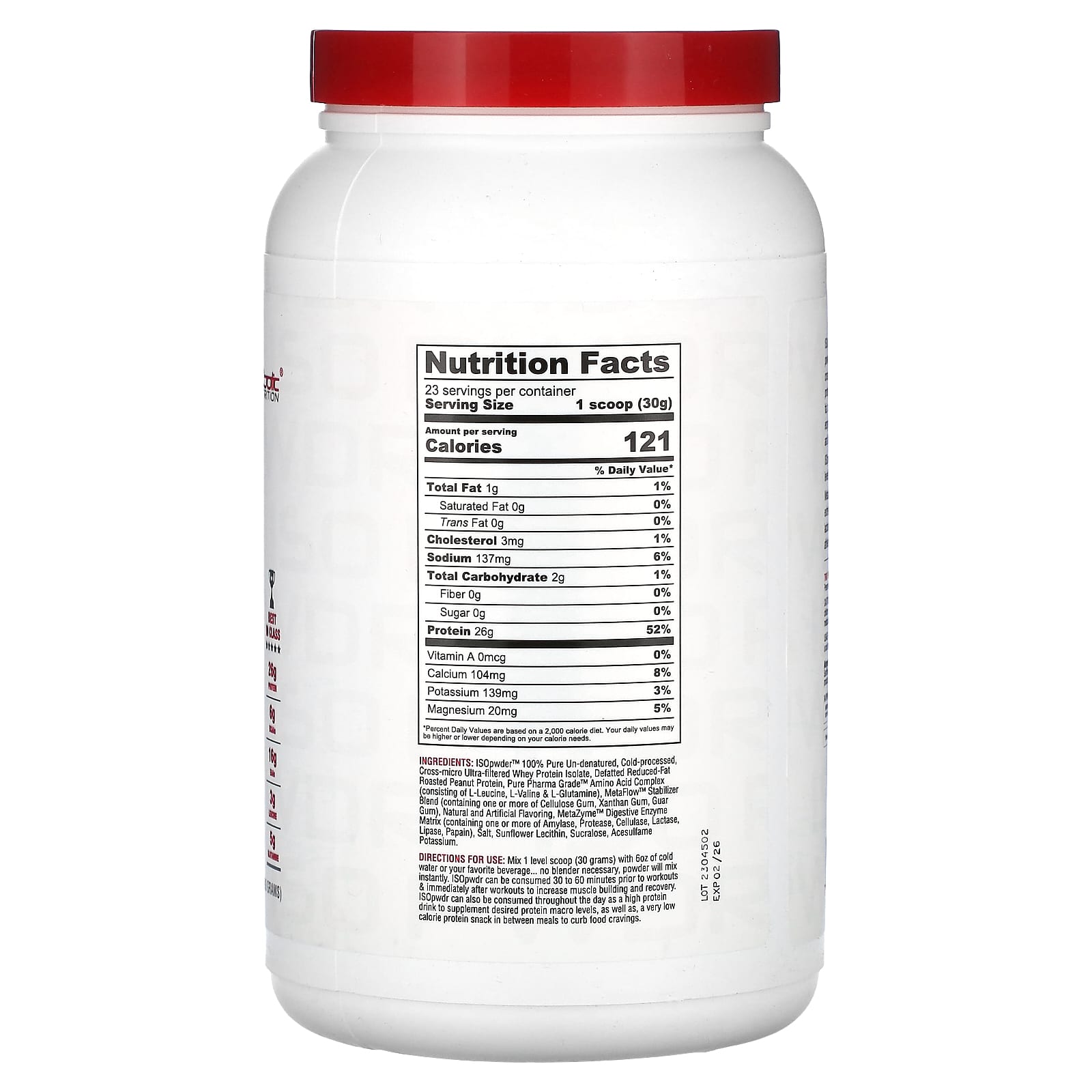Misture 1 colher medidora rasa (30 gramas) com 6 oz de água fria ou sua bebida favorita … sem necessidade de liquidificador, o pó se mistura instantaneamente. ISOpwdr pode ser consumido de 30 a 60 minutos antes do treino e imediatamente após o treino para aumentar a construção e a recuperação muscular. ISOpwdr também pode ser consumido ao longo do dia como uma bebida rica em proteínas para suplementar os macro níveis de proteína desejados, bem como um lanche proteico de muito baixa caloria entre as refeições para reduzir a compulsão alimentar.