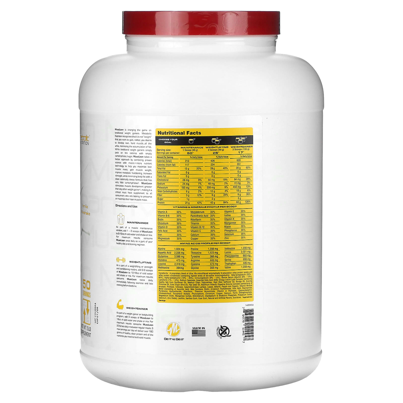 Dedicada à fabricação de suplementos nutricionais de alta qualidade, respaldada por pesquisas científicas e formulada por um médico, a Metabolic Nutrition é a primeira a apresentar um ganho de peso “muscular” magro revolucionário projetado com alto teor de proteína, gorduras essenciais saudáveis e baixo teor de carboidratos para torná-lo o único o verdadeiro Lean Muscle Gainer de seu tipo no mercado. Apresentamos o MuscLean – aclamado por médicos, atletas e consumidores. A fórmula inovadora do MuscLean estimula o ganho de massa muscular magra, otimizando positivamente a resposta dos bons hormônios (hormônio do crescimento e insulina) aos principais macro + micronutrientes enquanto elimina os efeitos dos maus hormônios catabólicos (cortisol).