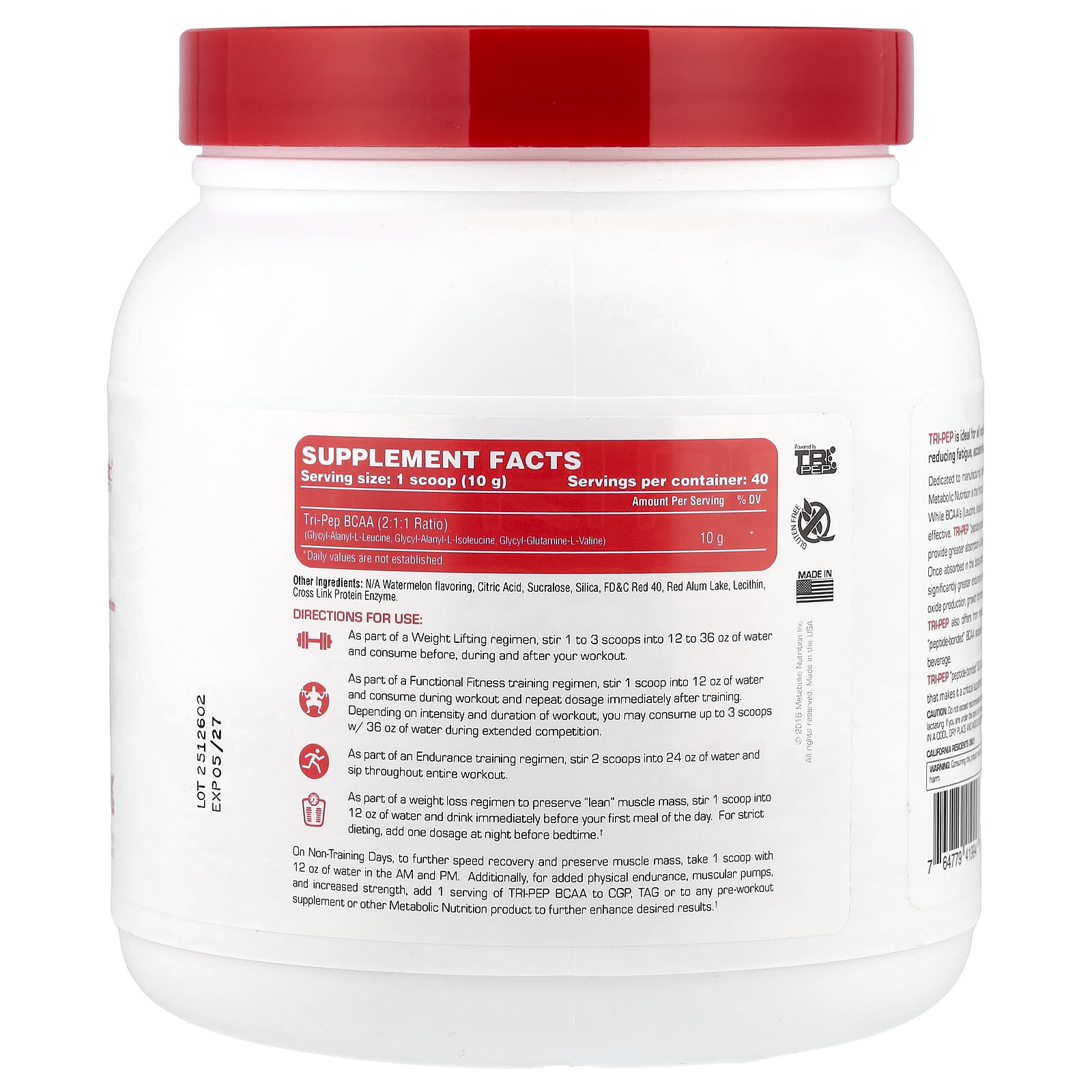 Metabolic Nutrition Tri-Pep® Aminoácido de Cadeia Ramificada Melancia 400 g – Metabolic Nutrition Suplementos Aminoácidos BCAA.