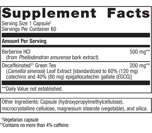 • Metagenics berberina GT: Cada cápsula contém 500 mg de berberina hcl