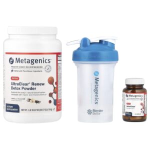 O Pó UltraClear® Renew Detox oferece suporte nutricional avançado para as fases de desintoxicação I, II e III, auxiliando na alcalinização natural do corpo e no metabolismo de metais pesados. Com uma base de 14,5 g de OptiProtein® — 12 g de proteína vegana de ervilha/arroz e 2,5 g de aminoácidos — ele inclui xanthohumol como XNT ProMatrix®, broto de brócolis e flósculo em pó como Brassinase™ e extratos de ameixa e romã para a saúde celular. A glicina e o sulfato de magnésio auxiliam na desintoxicação de Fase II, junto com a N-acetilcisteína, as catequinas do chá verde e antioxidantes, como betacaroteno, vitaminas C e E.