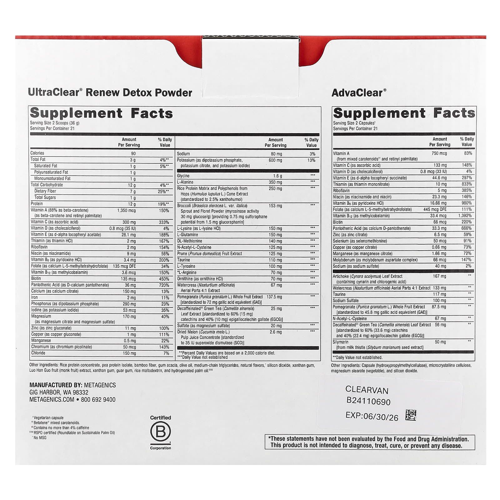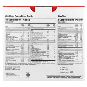 Auxilia no processo de desintoxicação natural do corpo. Contém AdvaClear® e UltraClear® Renew Detox Powder.