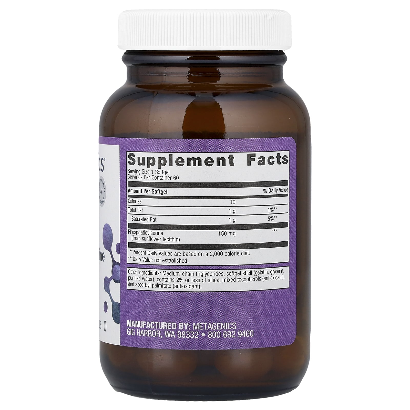 Metagenics Fosfatidilserina 60 Cápsulas Softgel (150 mg por Cápsula Softgel) – Metagenics Suplementos Fosfolipídeos Fosfatidilserina.