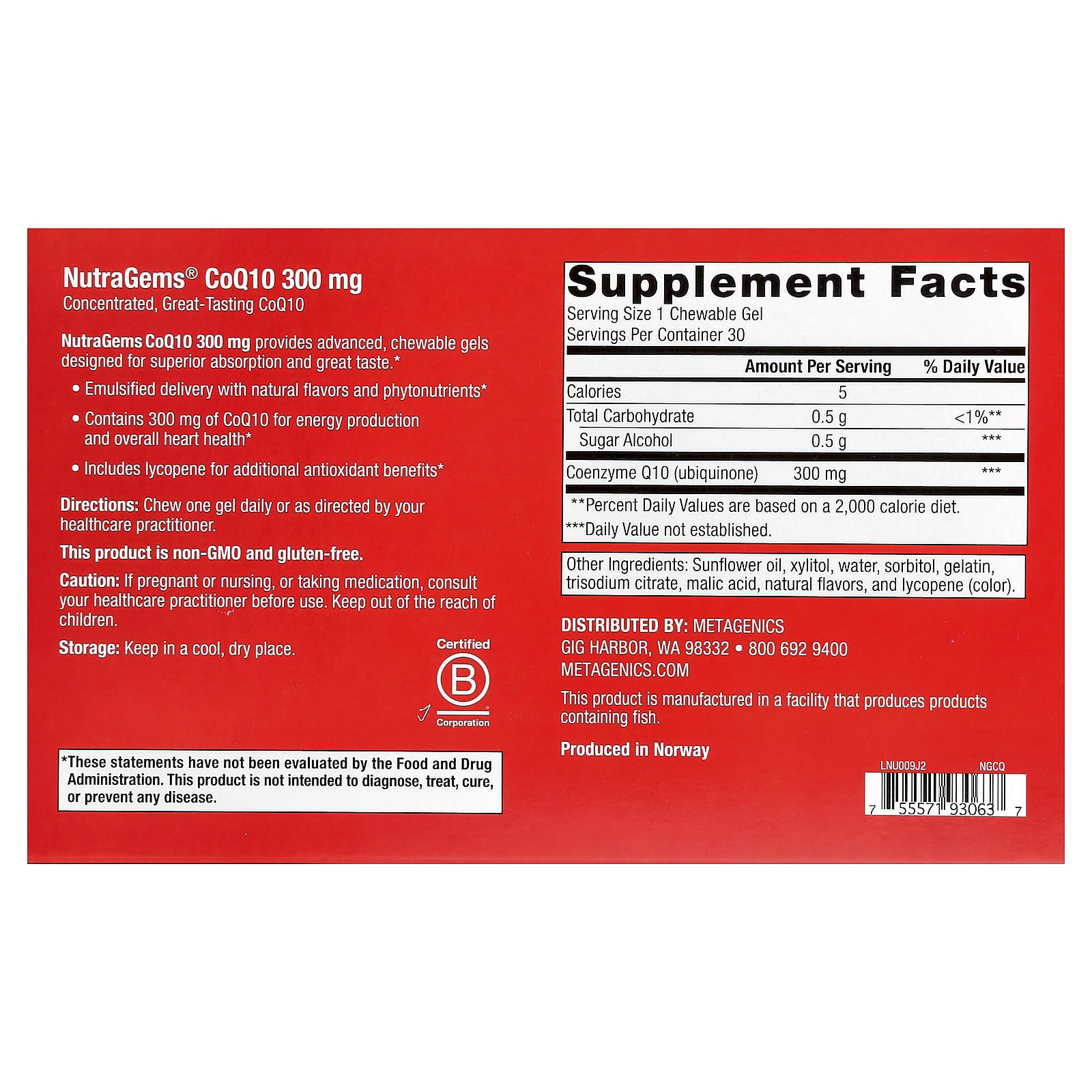 A CoQ10 de 300 mg da NutraGems fornece géis mastigáveis avançados desenvolvidos para absorção superior e excelente sabor.