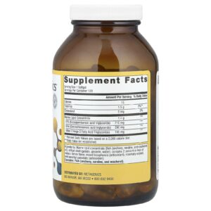 Concentrado de lipídeo marinho [peixe (anchova, sardinha, e cavalinha) óleo], revestimento da cápsula softgel (gelatina, glicerina, água), contém 2% ou menos de sabor natural de limão, tocoferóis mistos (antioxidante), extrato de alecrim, e palmitato de ascorbila (antioxidante).