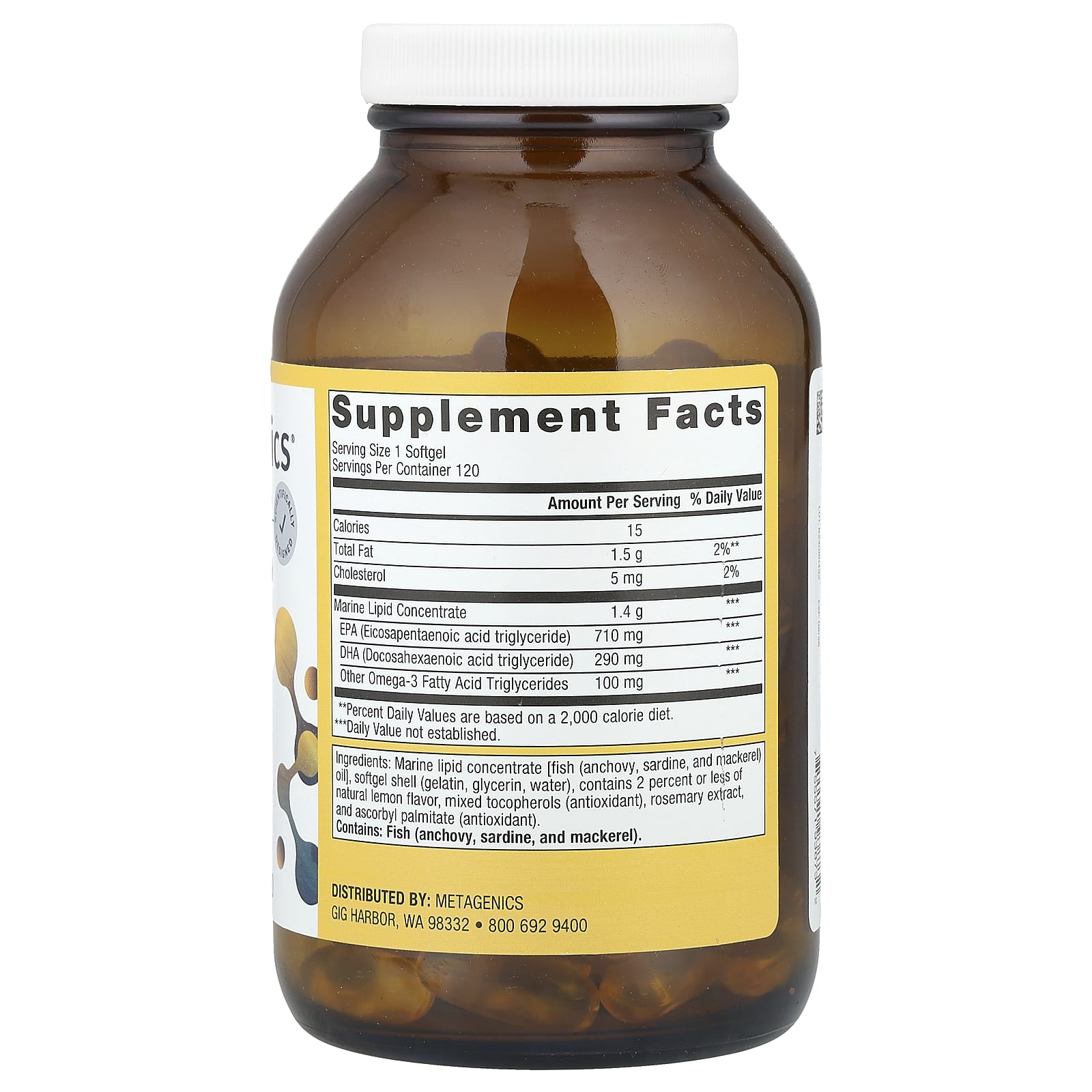 O Óleo de Peixe EPA-DHA de 1.000 mg da OmegaGenics® oferece uma fonte concentrada e purificada de ácidos graxos ômega-3 na forma de triglicerídeos de peixes de água fria sustentáveis. Cada cápsula softgel fornece 710 mg de EPA e 290 mg de DHA.