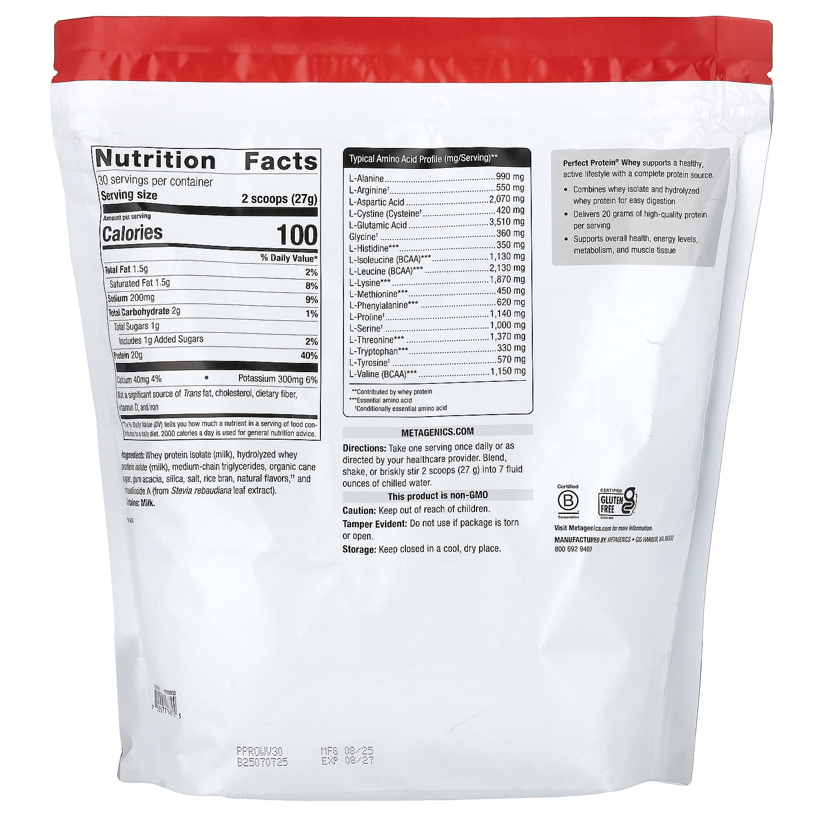 Metagenics Perfect Protein® Whey Baunilha Natural 810 g (1 lb) – Metagenics Nutrição Esportiva Proteína Proteína Whey Isolado protéico de soro de leite.