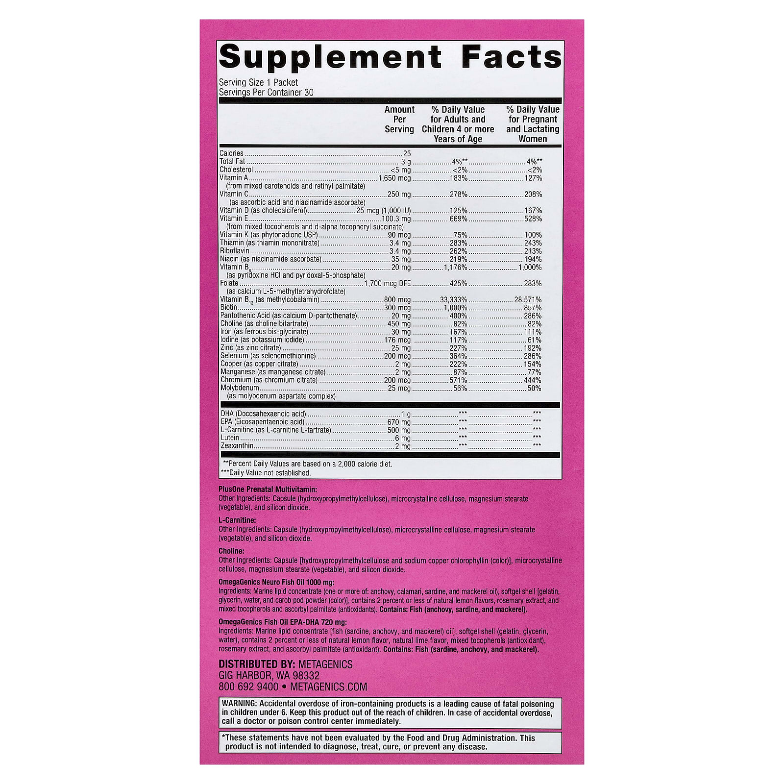 Metagenics PlusOne® Embalagens Pré-Natais Diárias 30 Embalagens – Metagenics Bebês e Crianças Mamães e Maternidade Suplementos Pré-natais Multivitaminas Pré-natais.