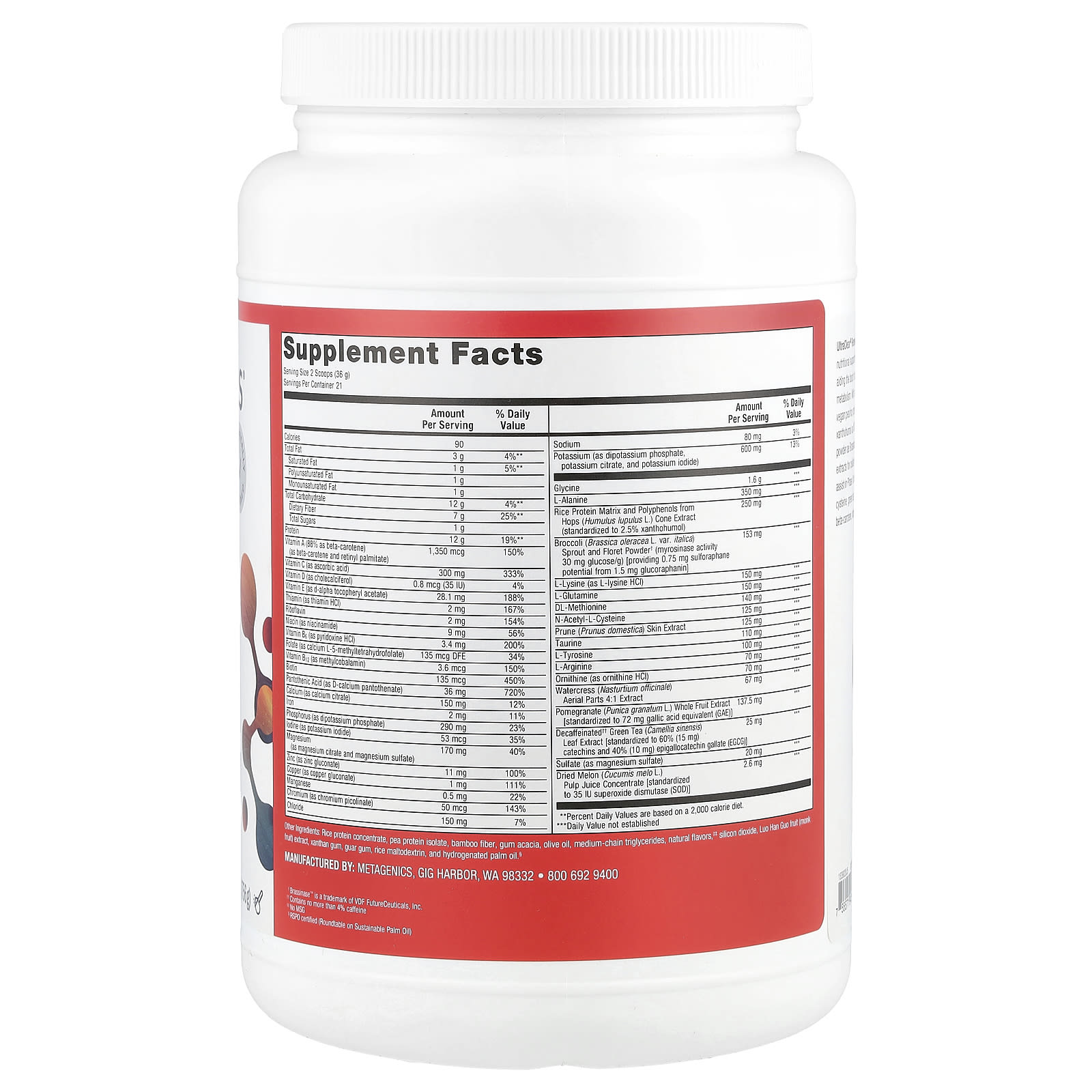 O Pó UltraClear® Renew Detox oferece suporte nutricional avançado para as fases de desintoxicação I, II e III, auxiliando na alcalinização natural do corpo e no metabolismo de metais pesados. Com uma base de 14,5 g de OptiProtein® — 12 g de proteína vegana de ervilha/arroz e 2,5 g de aminoácidos — ele inclui xanthohumol como XNT ProMatrix®, broto de brócolis e flósculo em pó como Brassinase™ e extratos de ameixa e romã para a saúde celular. A glicina e o sulfato de magnésio auxiliam na desintoxicação de Fase II, junto com a N-acetilcisteína, as catequinas do chá verde e antioxidantes, como betacaroteno, vitaminas C e E.