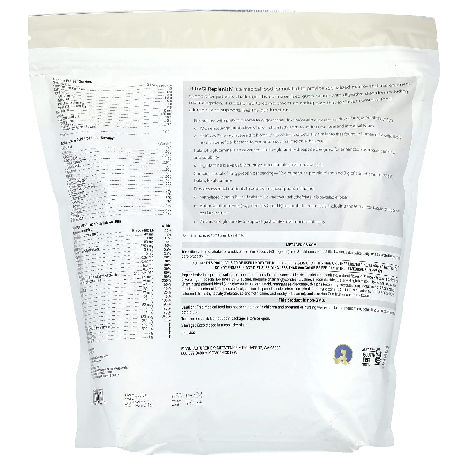 UltraGl Replenish® é um alimento medicinal formulado para fornecer suporte especializado de macro e micronutrientes para pacientes desafiados pela função intestinal comprometida com distúrbios digestivos, incluindo má absorção. Ele foi desenvolvido para complementar um plano alimentar que exclui alérgenos alimentares comuns e contribui para a função intestinal saudável.