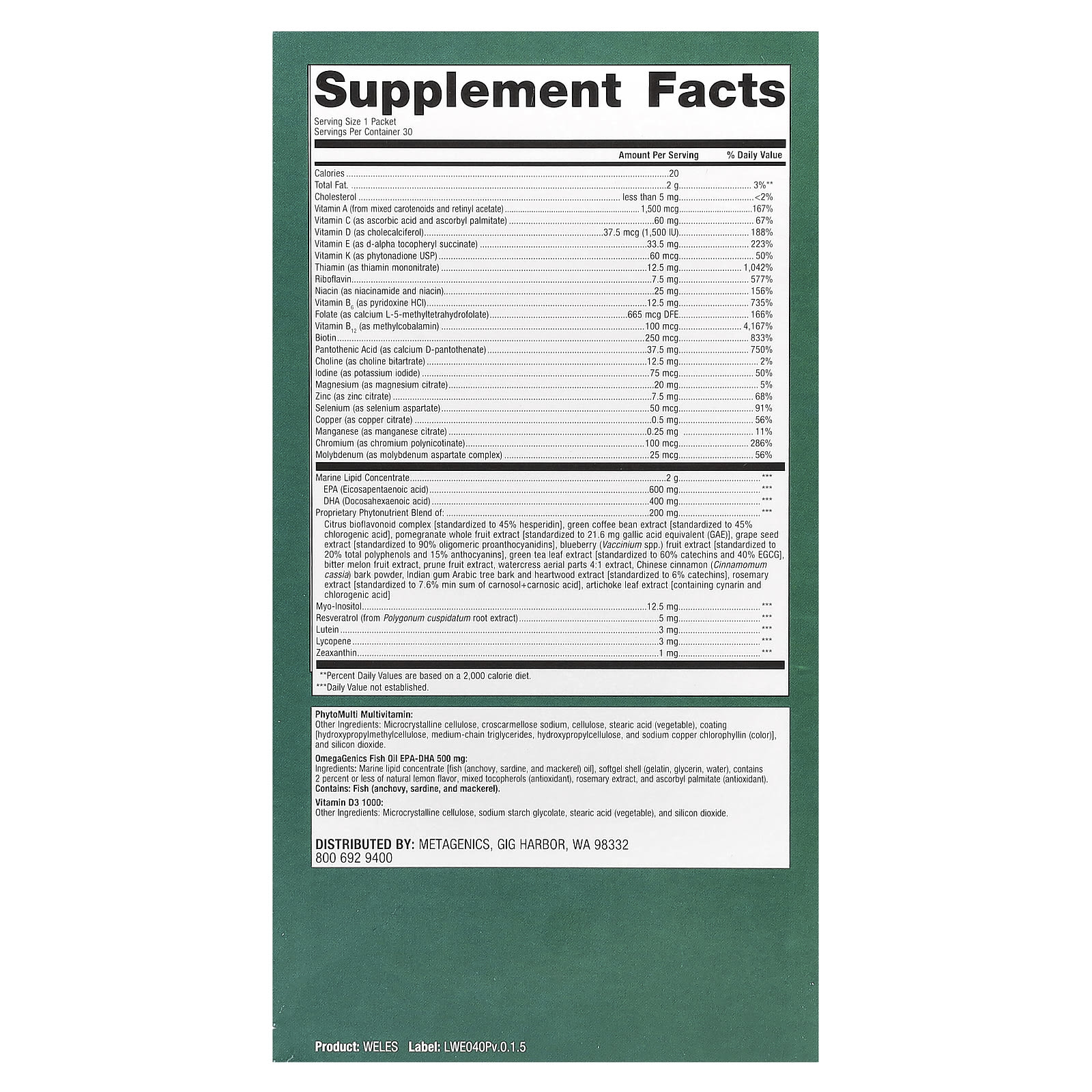 Metagenics Wellness Essentials® Pacotes Diários 30 Pacotes – Metagenics Suplementos Vitaminas Multivitamínicos.