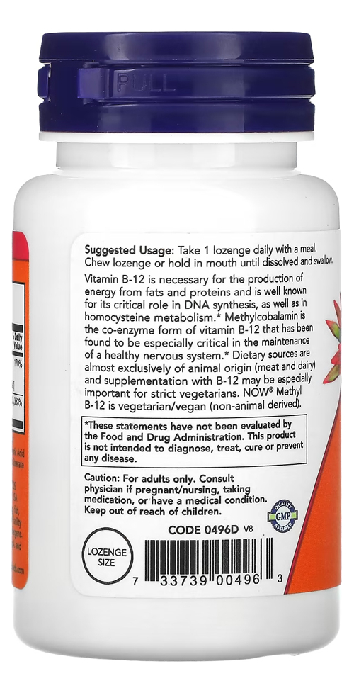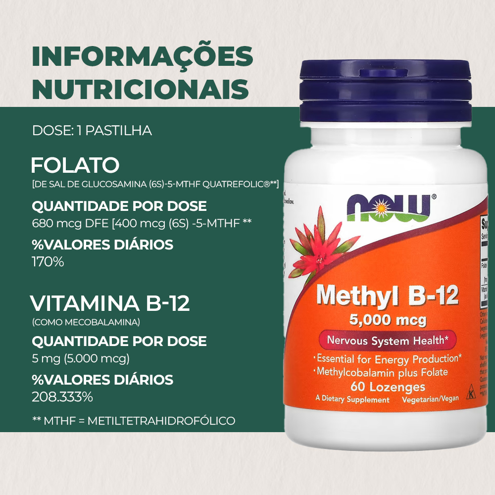 4. Uso Prático e Conveniente: Com 60 pastilhas por frasco, o Metil B-12 da Now Foods é fácil de incorporar na rotina diária. A pastilha dissolve-se sob a língua, oferecendo uma forma prática e eficaz de suplementação, adequada para uso contínuo.